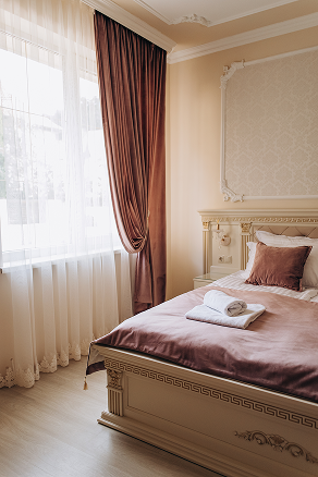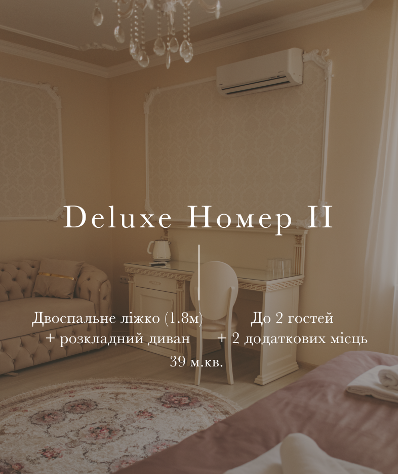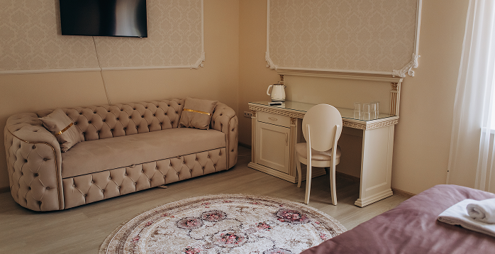 King size ліжко, Розкладний диван, Кавомашина для капсул, Електричний чайник, Сейф, Кондиціонер, Холодильник, Гостьовий куточок, Шафа / Гардероб