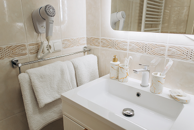 Душ, Фен, Халат, Туалетне приладдя, Туалет, Умивальник, Кімнатні капці