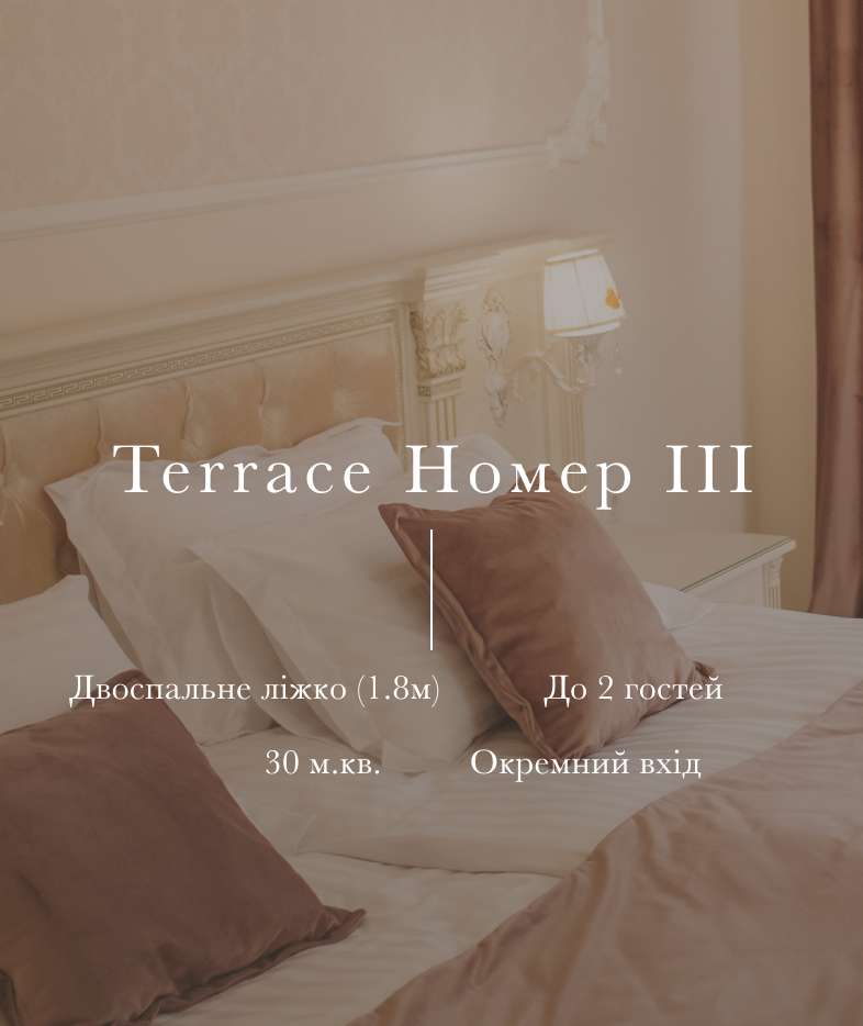 Окремний вхід, Терас, King size ліжко, Кавомашина для капсул, Електричний чайник, Сейф, Кондиціонер, Холодильник, Гостьовий куточок, Шафа / Гардероб